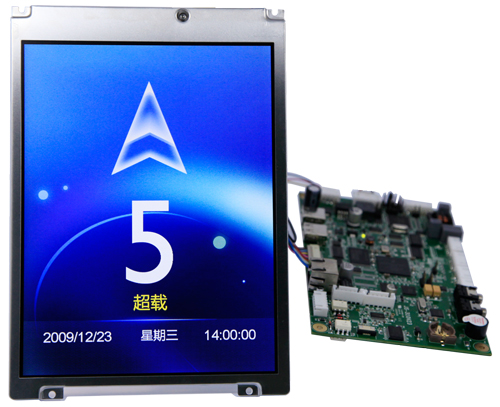 用于轎箱內(nèi)顯示,根據(jù)電梯信號(hào), 顯示相應(yīng)的動(dòng)畫、文字及語音播報(bào) 5.7寸LCD液晶 640X480 |